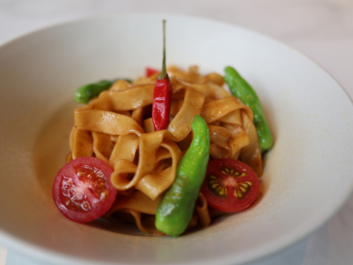 ベースで赤味噌を使用し、カラブアリア産のとうがらしで辛みを与えています。