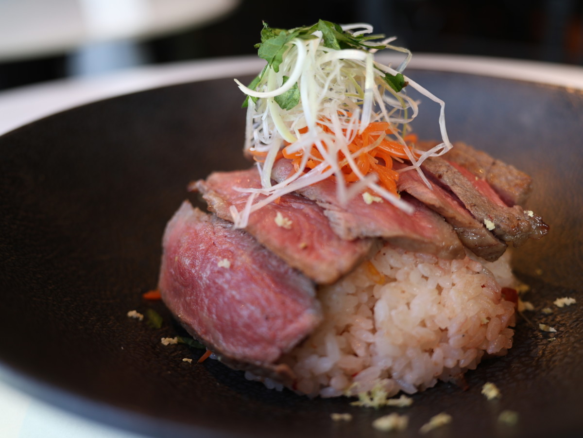 そもそものサーロインステーキが美味しくないと成り立たない仕上がりに加え、本わさびと大葉の香りが食欲を増進させます。